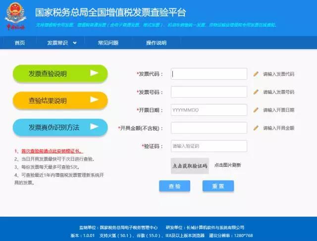 自2017年1月1日起,取得增值稅發(fā)票的單位和個(gè)人可登陸全國(guó)增值稅發(fā)票查驗(yàn)平臺(tái)(https://inv-veri.chinatax.gov.cn/),對(duì)新系統(tǒng)開具的增值稅專用發(fā)票、增值稅普通發(fā)票、機(jī)動(dòng)車銷售統(tǒng)一發(fā)票和增值稅電子普通發(fā)票的發(fā)票信息進(jìn)行查驗(yàn)。單位和個(gè)人通過網(wǎng)頁(yè)瀏覽器平臺(tái)首次登錄平臺(tái),應(yīng)下載安裝根證書文件,查看平臺(tái)提供的發(fā)票查驗(yàn)操作說明。