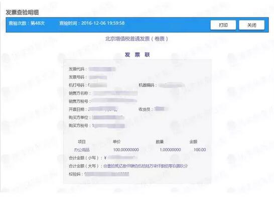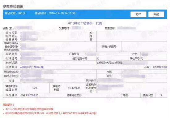 3. 確認(rèn)輸入的信息無誤后,點(diǎn)擊查驗(yàn)按鈕,系統(tǒng)自動(dòng)彈出查驗(yàn)結(jié)果: