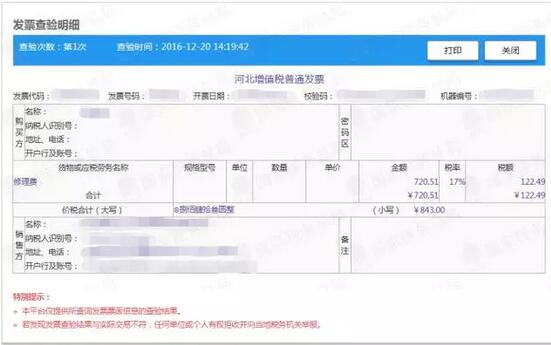特別提示:《中華人民共和國(guó)發(fā)票管理辦法》規(guī)定:不符合規(guī)定的發(fā)票,不得作為財(cái)務(wù)報(bào)銷憑證,任何單位和個(gè)人有權(quán)拒收。付款方取得發(fā)票后應(yīng)及時(shí)核對(duì)發(fā)票開具內(nèi)容是否真實(shí)、項(xiàng)目填寫是否齊全、加蓋的發(fā)票專用章是否與收款方一致。對(duì)于違反發(fā)票管理法規(guī)的行為,任何單位和個(gè)人有權(quán)舉報(bào)。