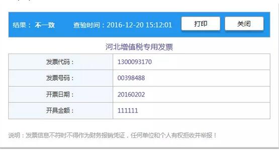 (3)不一致:納稅人輸入的發(fā)票信息與稅務(wù)機(jī)關(guān)電子信息至少有一項(xiàng)不一致,如確認(rèn)輸入的查驗(yàn)項(xiàng)目與票面一致,請(qǐng)與開票方或開票方主管稅務(wù)機(jī)關(guān)聯(lián)系核實(shí)。